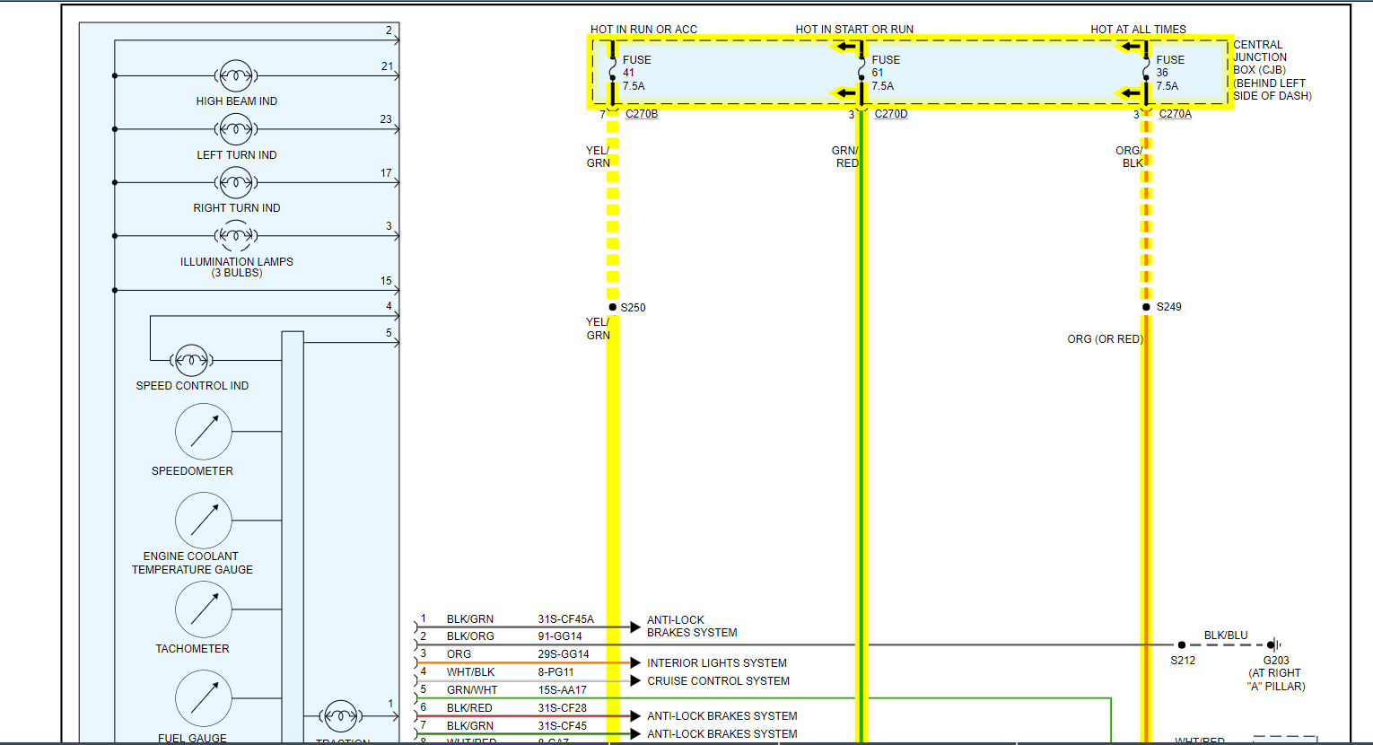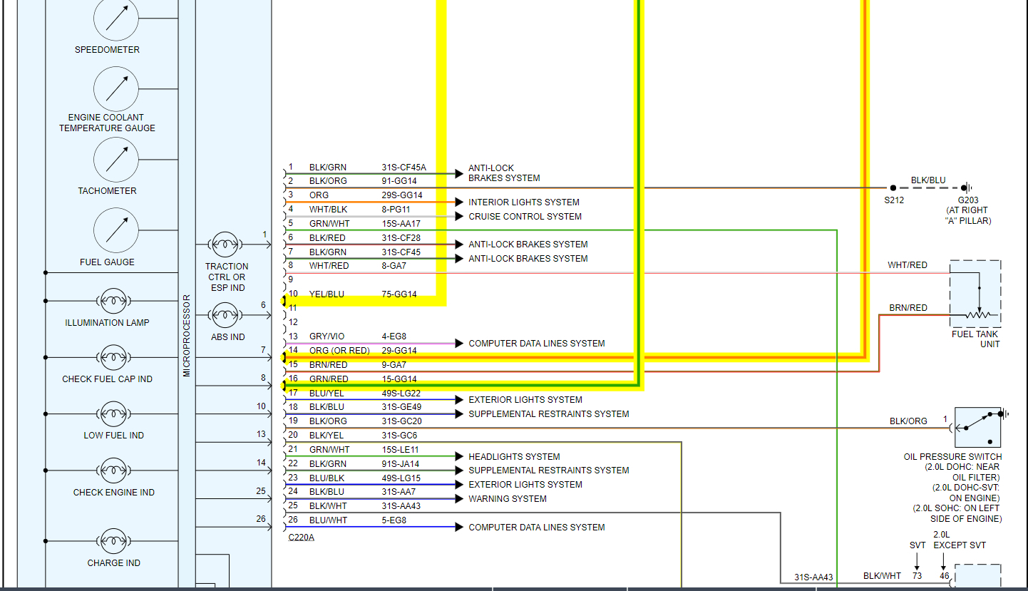 CAUTION:The SVT instrument cluster utilizes high AC voltage for the electro-luminescent backlighting system in both the instrument cluster and oil pressure and oil temperature cluster. Care must be exercised when making measurements to the instrument cluster circuits.