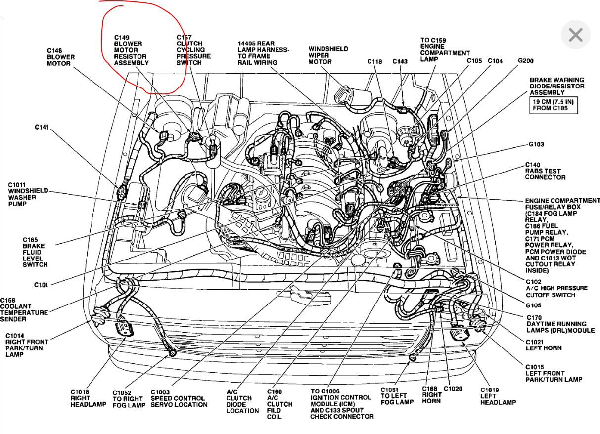 The blower motor resistor is located on the passenger side fire wall, next to the blower motor (see diagram).