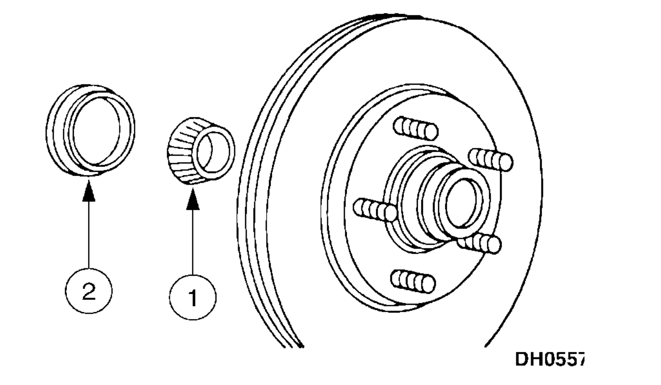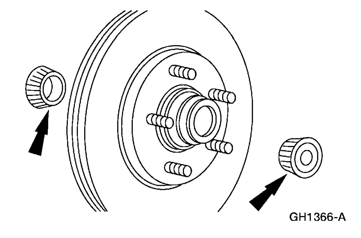 2. On 4x2 vehicles, thoroughly clean and inspect the front wheel bearings and the brake disc and hub.