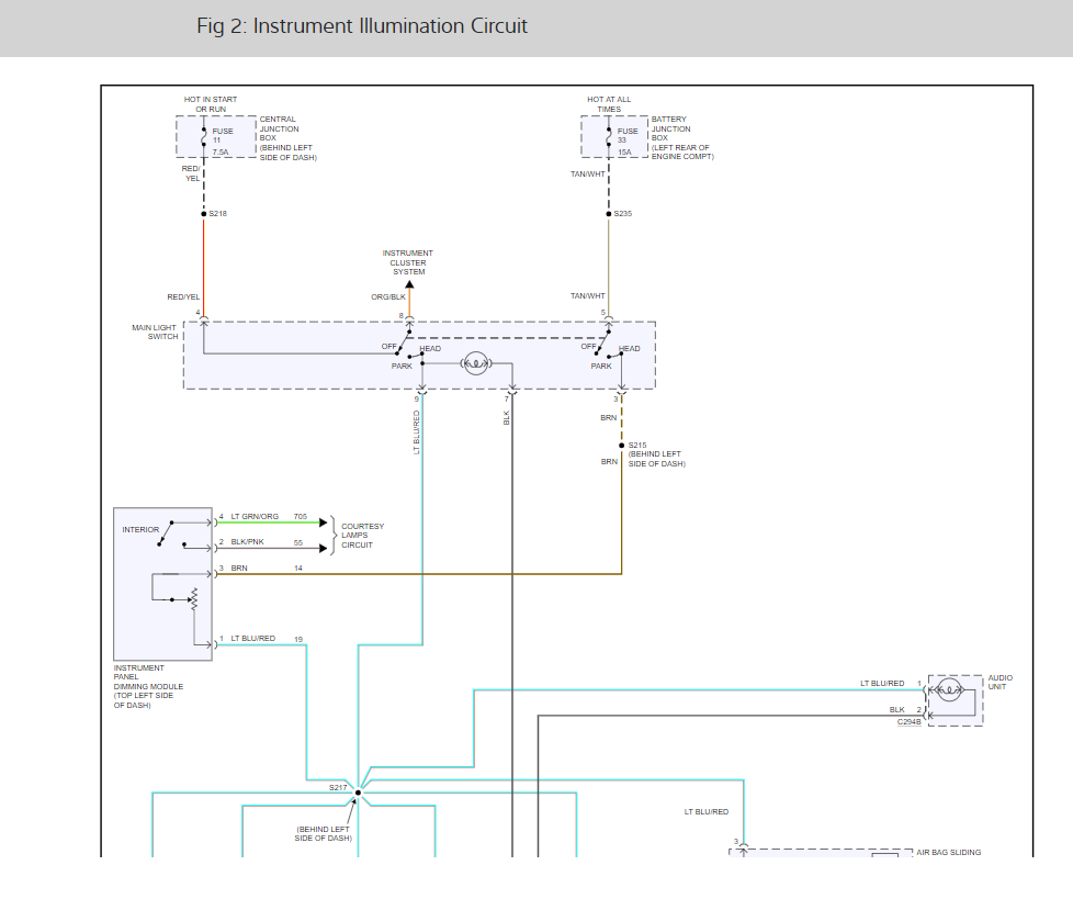I have disconnected the plug ins to the speedometer unit, I have no power to the red/ blue wire which should be the power source to the lights on dash. Rechecked fuses all are good ground is good. What next? I am am not sure.