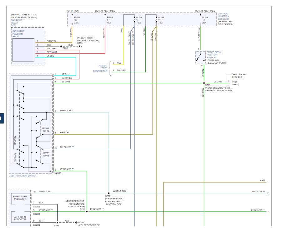 When I step on the brakes the right directionals light up solid with the brake lights. The bulbs all seem to be intact. Is it a ground? Is it a Switch? If so where? 2003 Ford Ranger.