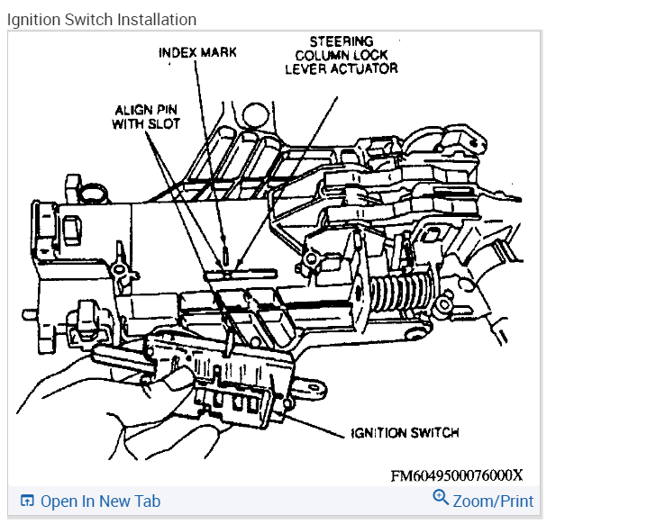 19. Install ignition switch. Align pin from ignition switch with slot in lock/column assembly. Position slot in lock/column assembly with index mark on casting. Ignition switch should be in RUN position. Install steering column lock gear. Coat gear with suitable ignition lock grease.