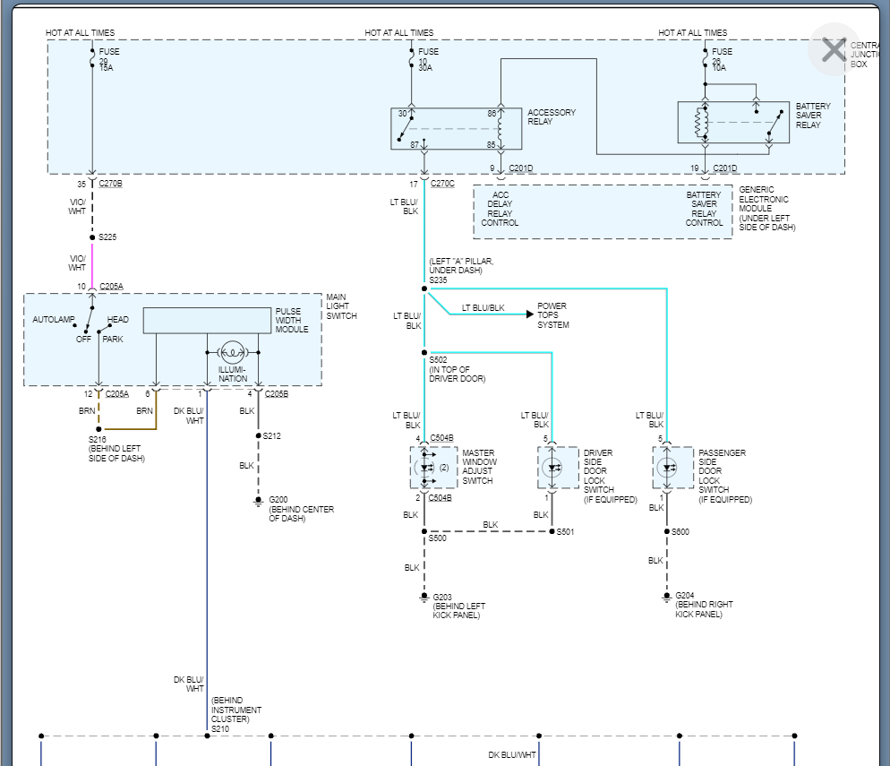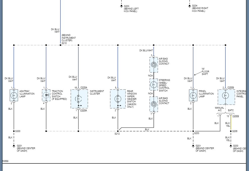 However, if the cluster lights are the only ones that do not work then the switch is fine. As you will see from the wiring diagram that is not the only light that is run off this switch/splice.