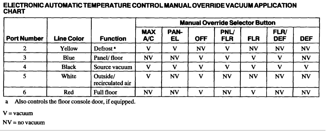 The mode selection is done through a series of air doors that are operated by vacuum. When there is either a partial or total loss of vacuum, the system will default to either defrost or on some vehicles, heat. Acceleration can also have an effect on the doors for the same reason.