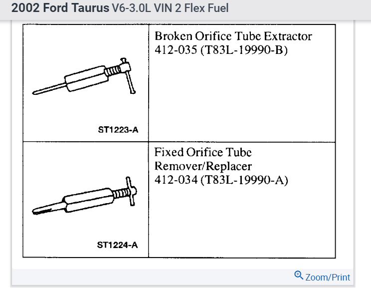 I will remind you again that an orifice tube will not have a problem unless the system is contaminated and if you do not resolve the source of the contamination, your subsequent repair cost will be astronomical.