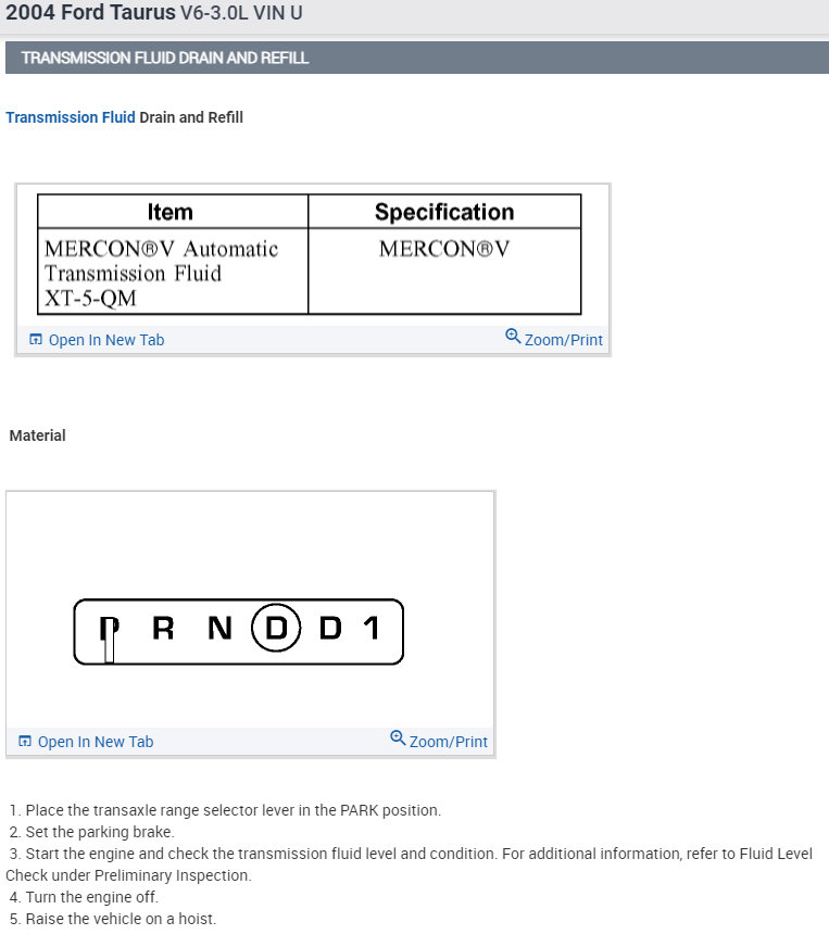 This vehicle uses Mercon V Automatic Transmission Fluid.