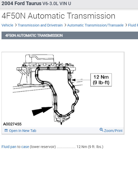The transmission pan bolts need to be torqued at 9 lb. ft.