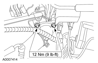 Install the water inlet connection assembly retainers and tighten them to 71-106 inch lbs. (8-12 Nm).