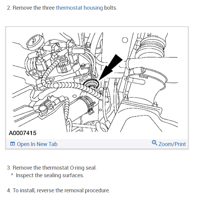 Install the O-ring, thermostat and the water inlet connection. Refer to the accompanying illustration If you can-t remember how the O-ring and thermostat are positioned.