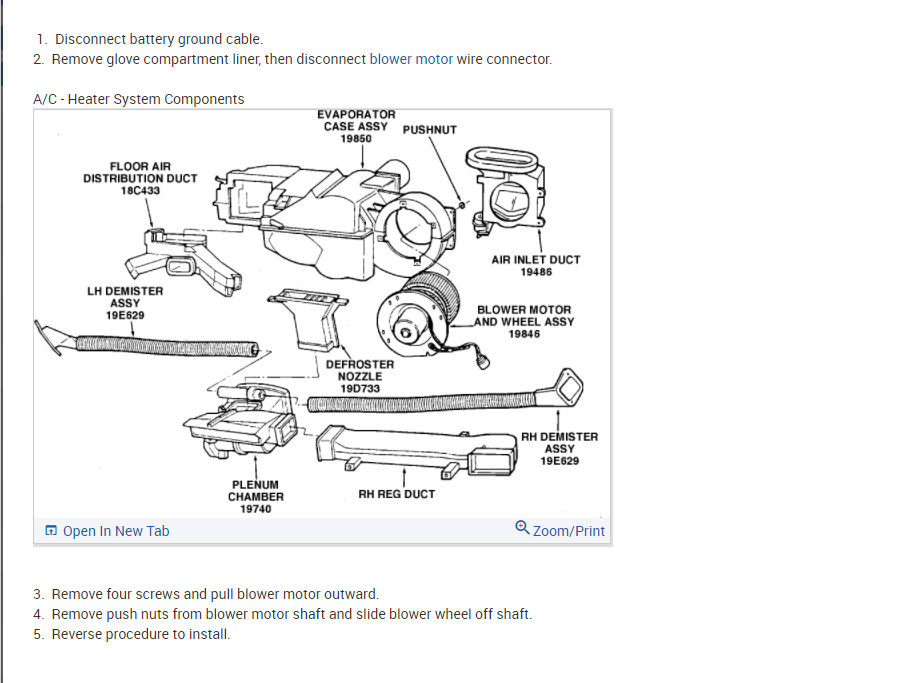 Air Conditioning Problem 1995 Ford Thunderbird V8 Two Wheel Drive Automatic Where Is The Blower Motor For The Heater/ Ac Located? If...