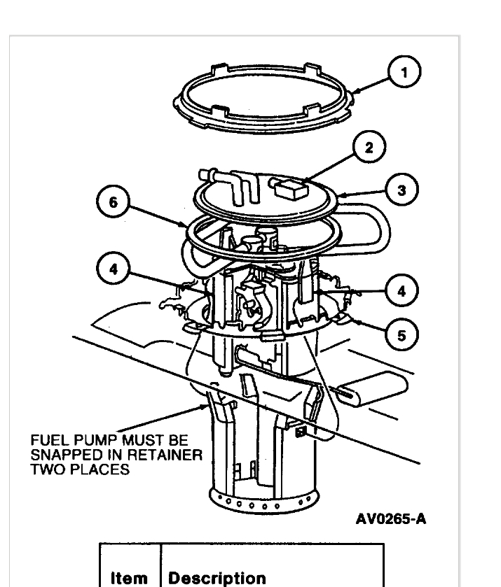 3. Turn the fuel pump module locking ring counterclockwise using a locking ring removal tool or a brass drift and remove the locking ring.