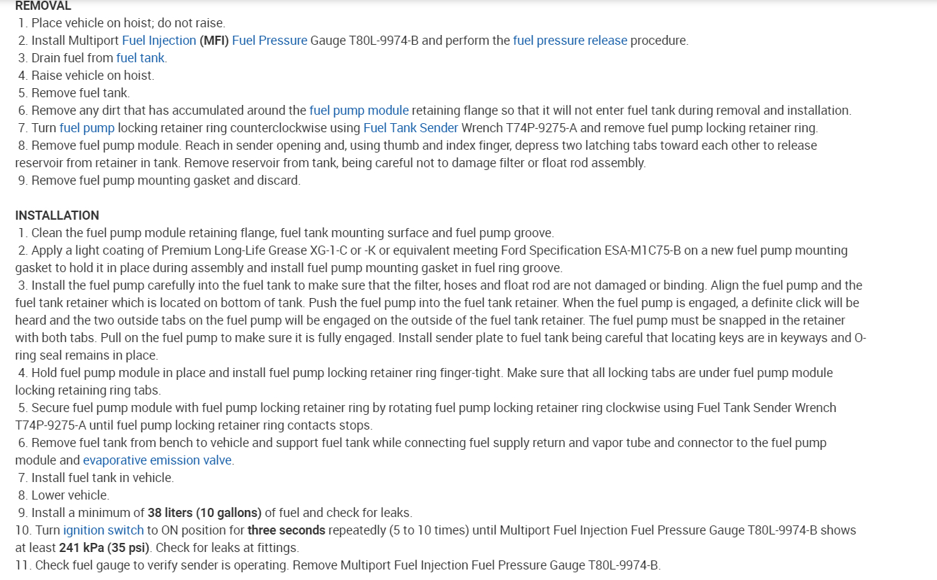 2. Remove any dirt that has accumulated around the fuel pump module attaching flange, to prevent it from entering the tank during service.