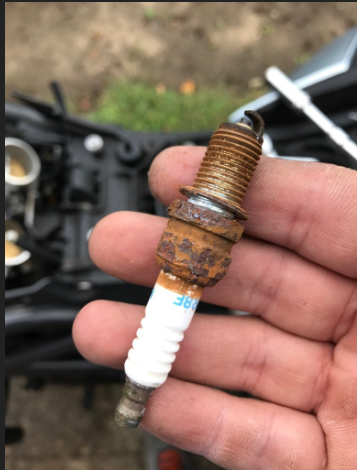 I am attaching some pictures and charts that will help with determining possible causes of plug damage. This first chart is for the tip of the plug and the second picture shows normal rust that can happen on a plug that has not been changed in a while.