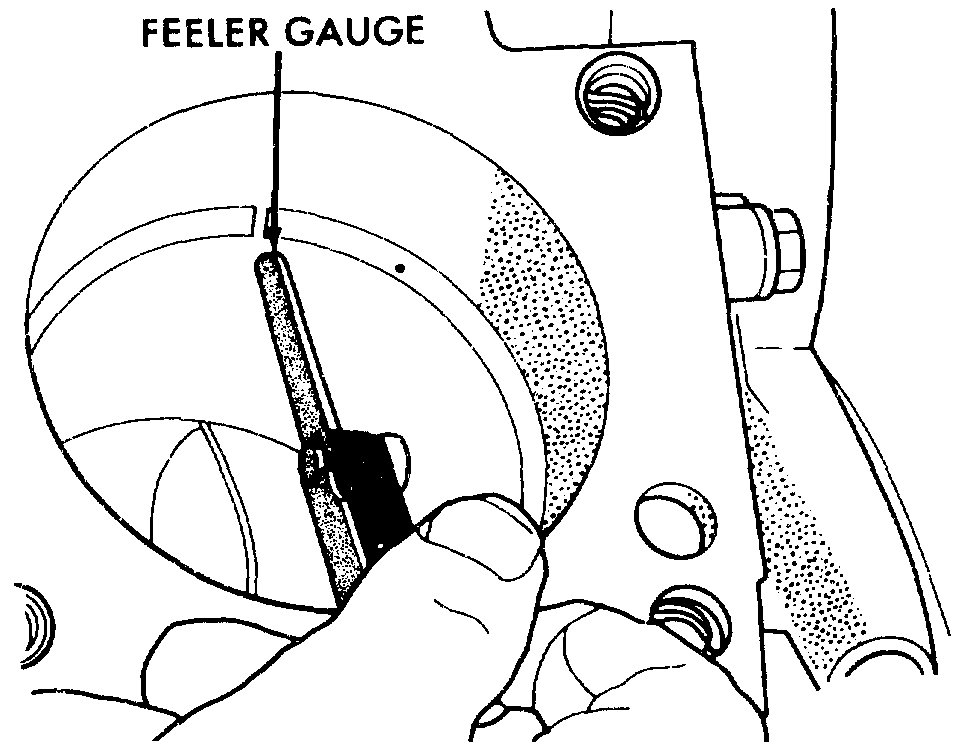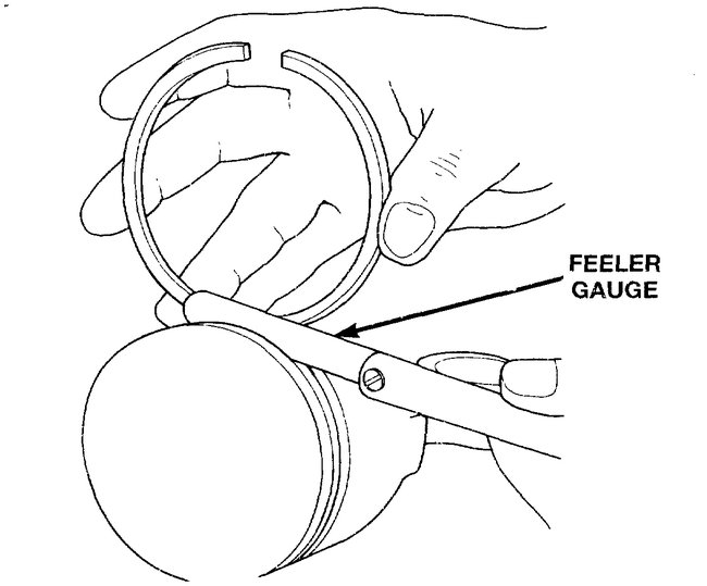 4. Place ring in the cylinder bore and push down with inverted piston to position near lower end of the ring travel. Measure ring gap with a feeler gauge fitting snugly between ring ends.