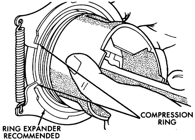 1. Carefully clean the carbon from all ring grooves. Oil drain openings in the oil ring groove and pin boss must be clear. Do not remove metal from the grooves or lands. This will change-ring-to-groove clearances and will damage the ring-to-land seating.