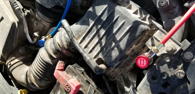 Thought I would update, seeing as you have been a huge help. Took to an actual repair shop, because we were tired of playing the guessing game. Ended up one of our hoses (that has been discontinued) had a hole in it where we couldn't see (ordered the part through Rockauto and will be fixed soon), also water pump was pretty beat up our guy said (which was replaced today brand new) and we also needed a new belt (replaced) he did say the old blower motor was shot along with the resistor and pigtails to the A/C. Controls, so it was a multitude of different issues that wasn't going to be able to be done on our own, so we thank you for all the help you provided and will have our A/C going by tomorrow.