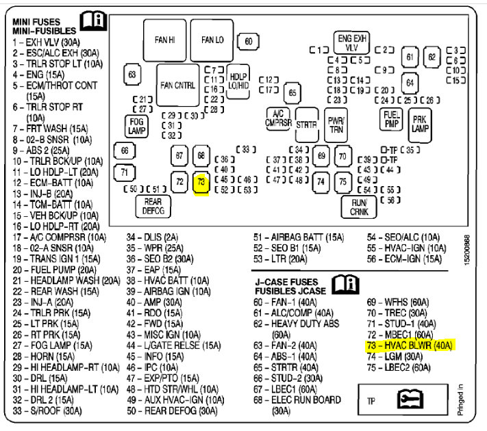 I misunderstood. If the front blower motor doesn't work at any speed, first check fuse 73 in the under-hood fuse box. If that is good, we will need to check for power at the blower motor itself.