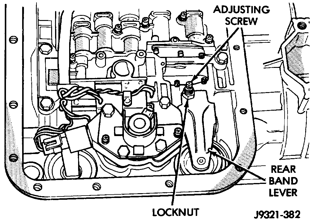 The transmission oil pan must be removed for access to the rear band adjusting screw.