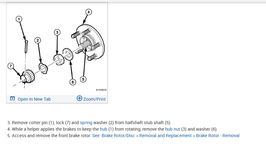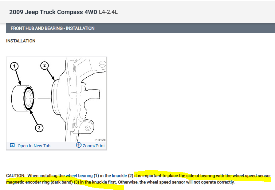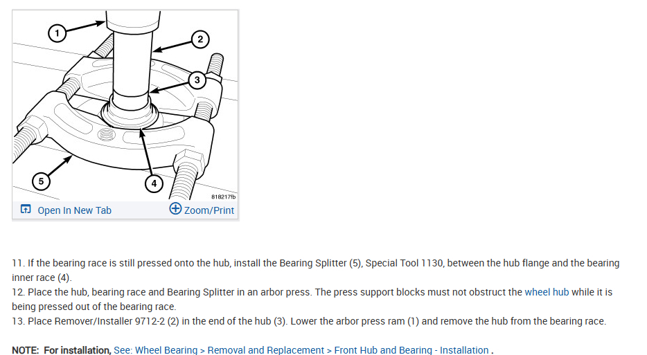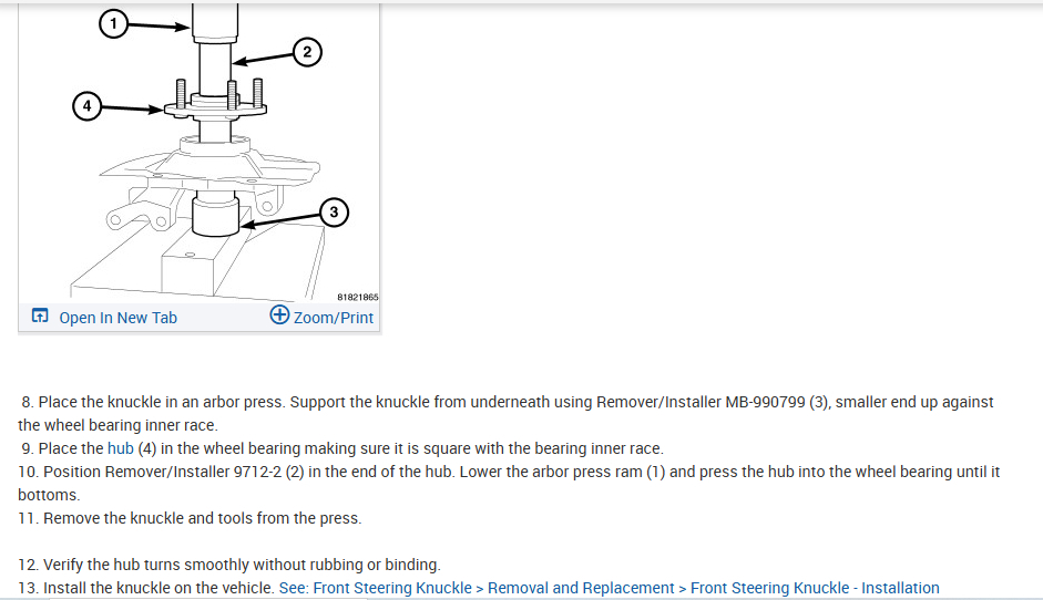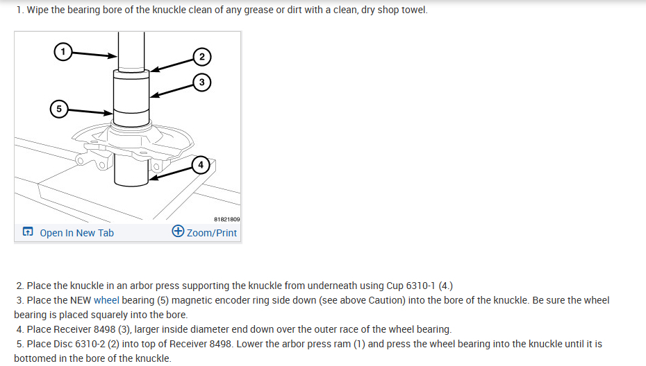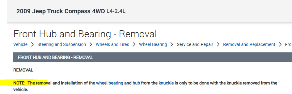 Before we get started, please be advised that the front hub bearing requires the entire steering knuckle to be removed. Also, you will need a press to remove the old bearing and then to reinstall the new one. If you don't have a press or access to one, you will not be able to replace the bearing.