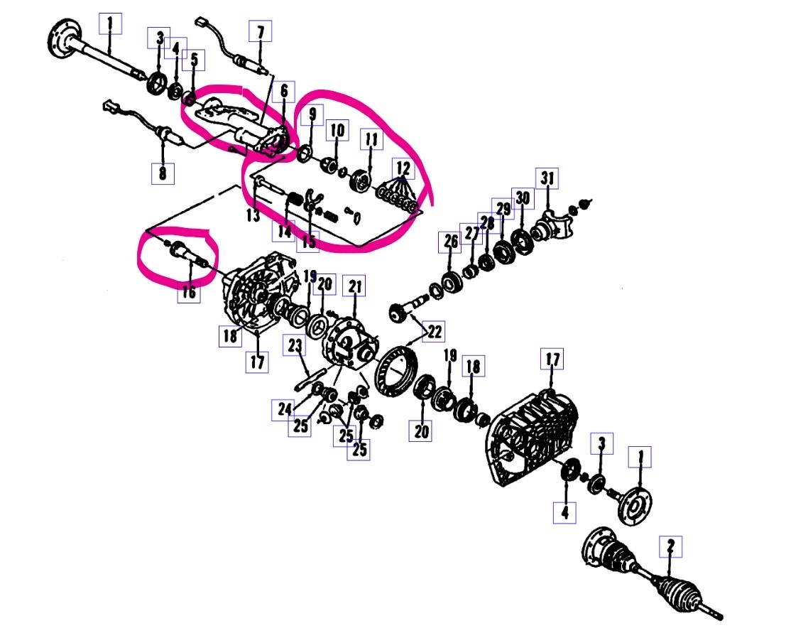 Ouch, that isn't a common thing with those. With where that is broken, and it looks like an old break, I would suggest replacing the complete front differential. There are bearings and bushings in there (circled parts) that will be damaged and metal from those pieces will be in the lube. Replacing the complete unit would get you all of those parts in one shot and also take the truck out of service for far less time. You will need to look at the mounting as well because that unit is mounted using rubber mounts that don't move that far. As for replacing, you basically unbolt the outer axle flanges from the front inner CV joints, then the driveshaft. Disconnect the electronics and unbolt the unit and take it out, reverse the process to install the replacement. Verify the axle ratio and any options then hunt up a replacement. Car-Part. Com might help with that.