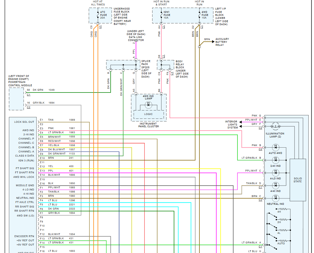 Here is the reason I need this. On my 2001 GMC Safari AWD, I swapped out the OEM AWD transfer case NV136 with a NP246 and all wire harness from a donor Silverado. To free up the front axle for smooth turns and reduce wear on the T-Case I installed a T-Case that is vacuum actuated off a 2003 Chevy S10. The vacuum is only supplied to the actuator when vacuum is applied to make the front right axle live when 4wd is commanded. For this to happen an electric solenoid is connected in series with engine vacuum source. It is turned on when 4WD is asked for. I need a 12v source that is controlled by the TCCM or directly from the transfer case. There is 4 wires ready to plug into the Silverado's front differential actuator motor. Here lies the problem, the S10 front diff is locked in via vacuum actuator.