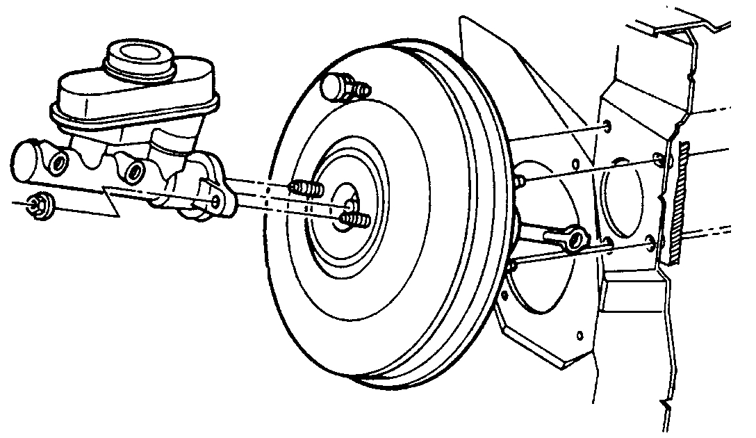 i 2. Position brake master cylinder assembly on studs on power brake booster assembly.