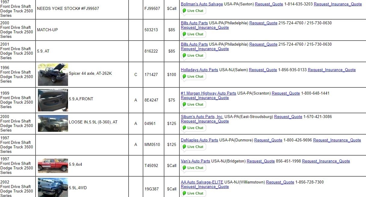 You can go to www. Car-part. Com and enter your information and they have about 5 pages of driveshafts.