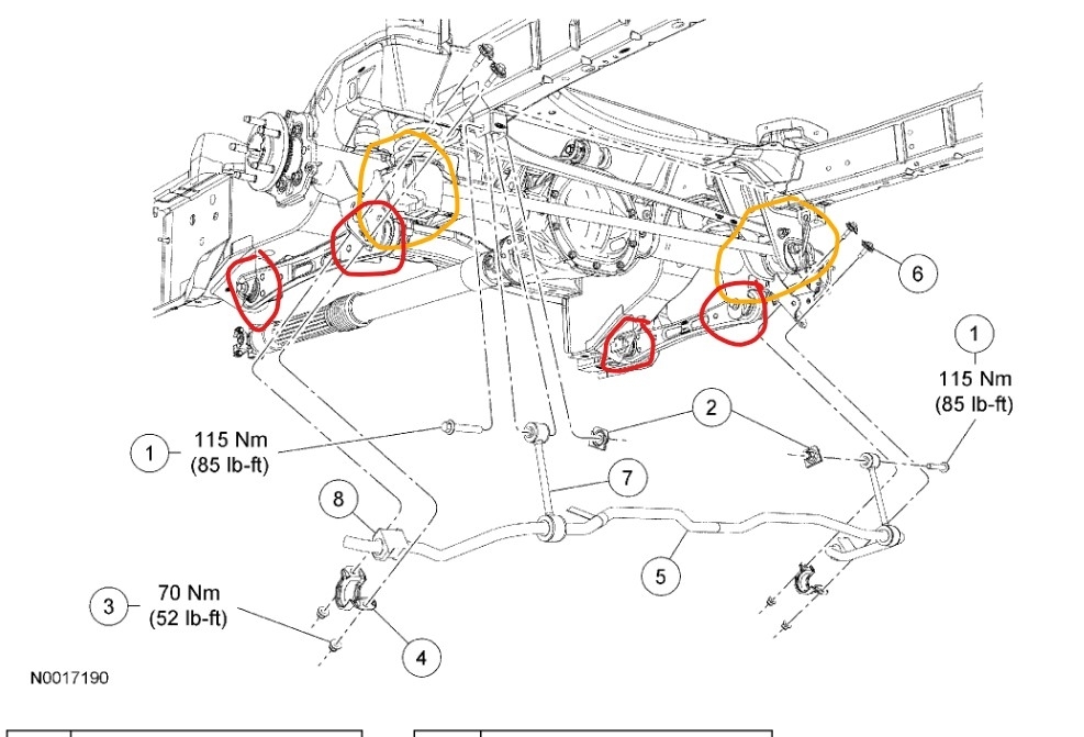 Track bar bushings are the items I circled in the picture. It holds the rear axle in place, so it doesn't move side to side. However, it sounds like you have an issue with it if one tire is sticking out. Is this car lowered or stock? If stock, there is an issue with either the track bar or the mounts for it. If it's lowered, it sounds like they didn't install an adjustable track bar to center the rear axle.
