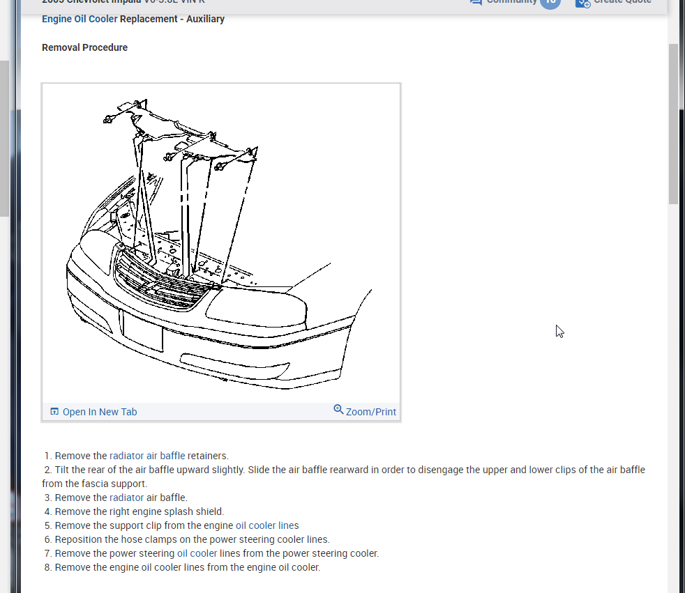 Someone attempted to assist me in removing my car listed above from where it was stuck in front of his house with a tow rope. He attached it to my radiator housing and spun his Dakota 4x4 tires for about 3 minutes before he forcefully removed it from my car told me to cut it off mumbled that my frame must have had prior damage and my car was “kapoot”. So I took a come a long and hooked to my radiator housing pulled the opposite way he did. Attempting to remove my busted oil cooler component, the one that looks like a small radiator and is installed between the radiator and my fans I’m having a bit of trouble. My Haynes manual has very little information, I need to know what size of flare wrench and open end wrench I need and what technique has to be used with the two wrenches to remove the lines from the oil cooler component. Should I just replace the entire oil cooling system? I had no option but to buy the kit to get the damaged part.