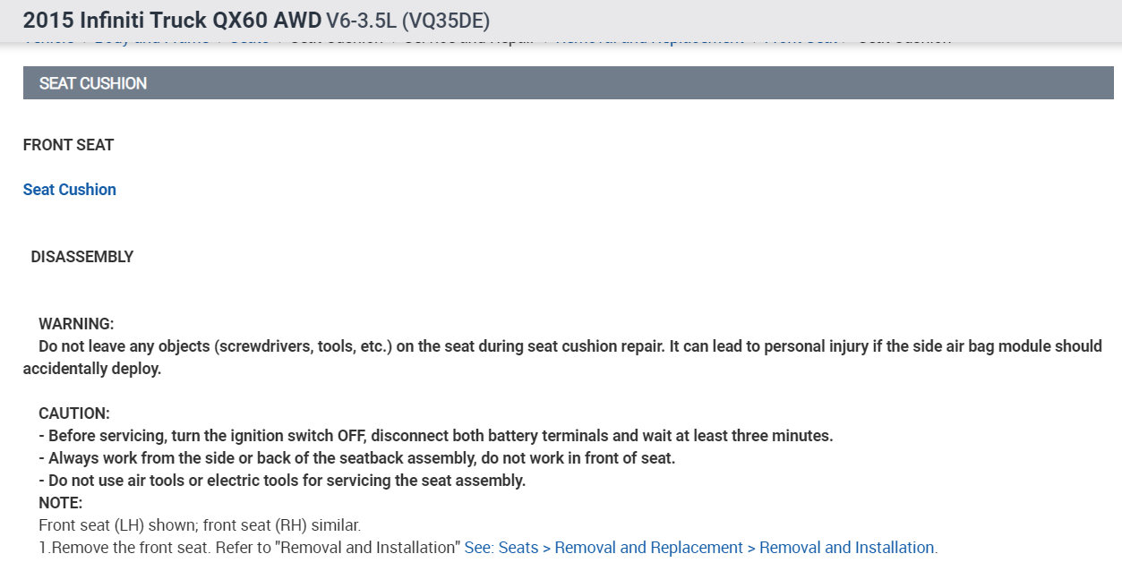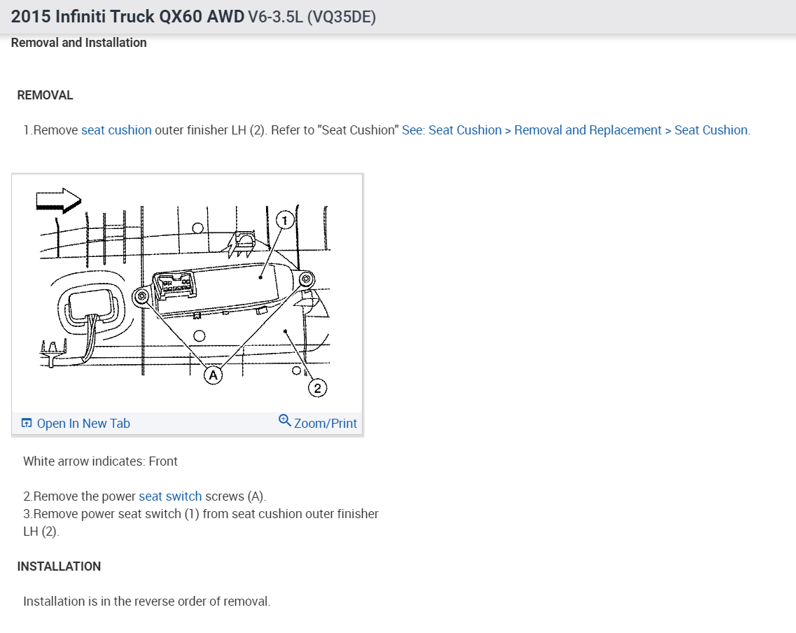 Please show how to replace the front passenger seat switch on the vehicle listed above. Thanks