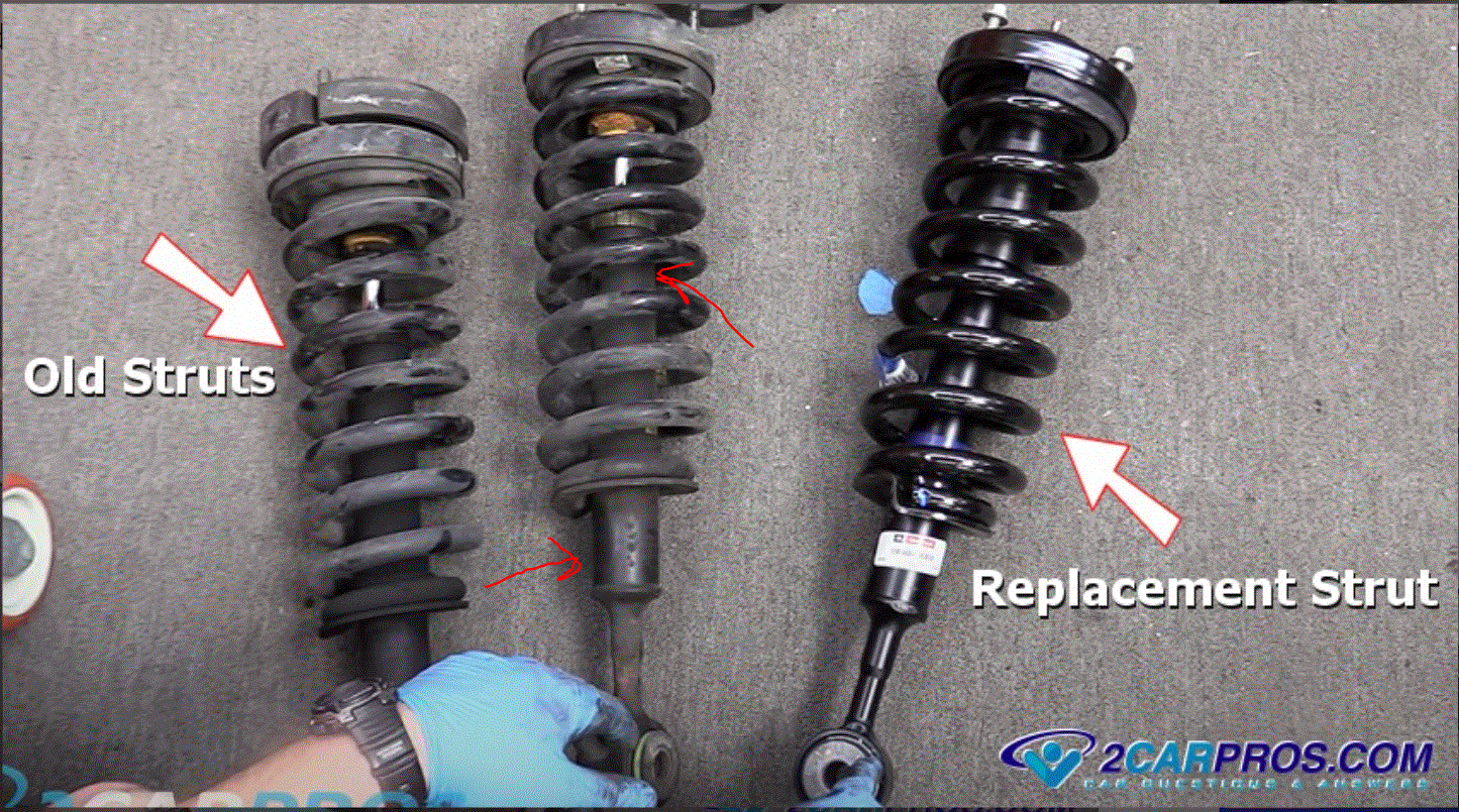 Take a look at the front struts. See if there is any evidence of oil leaking from them. See pic 1. Also, bounce the front of the vehicle. After you let go, it should stop bouncing within three bounces. Does that happen?
