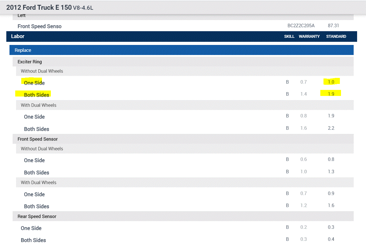 I believe you are asking the cost for both front wheel speed sensors. I attached a pic below that has a break down of labor time.