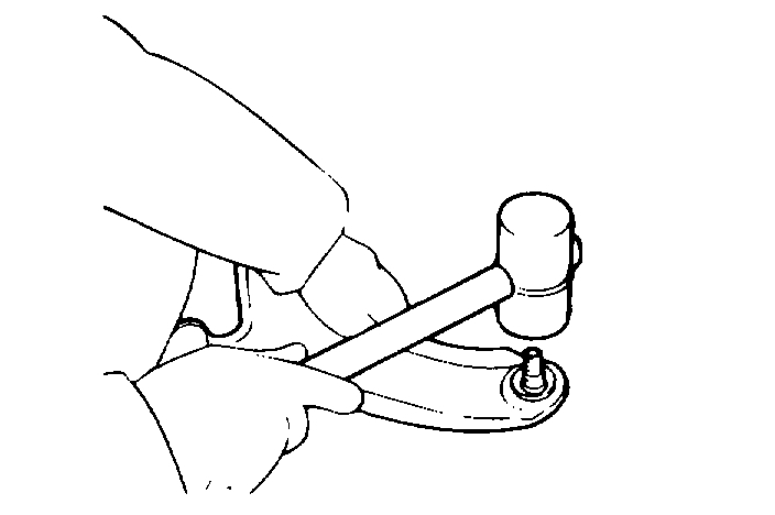 3. Using a plastic hammer, tap the ball joint out of the lower arm.