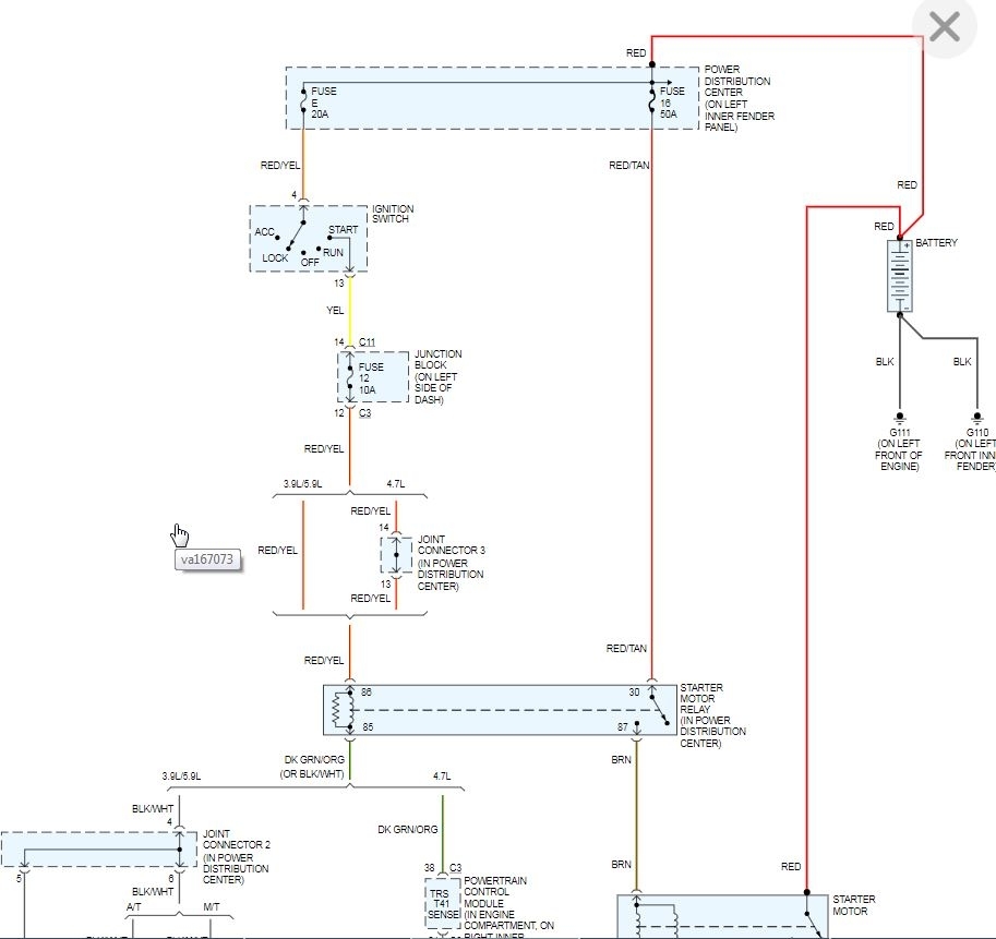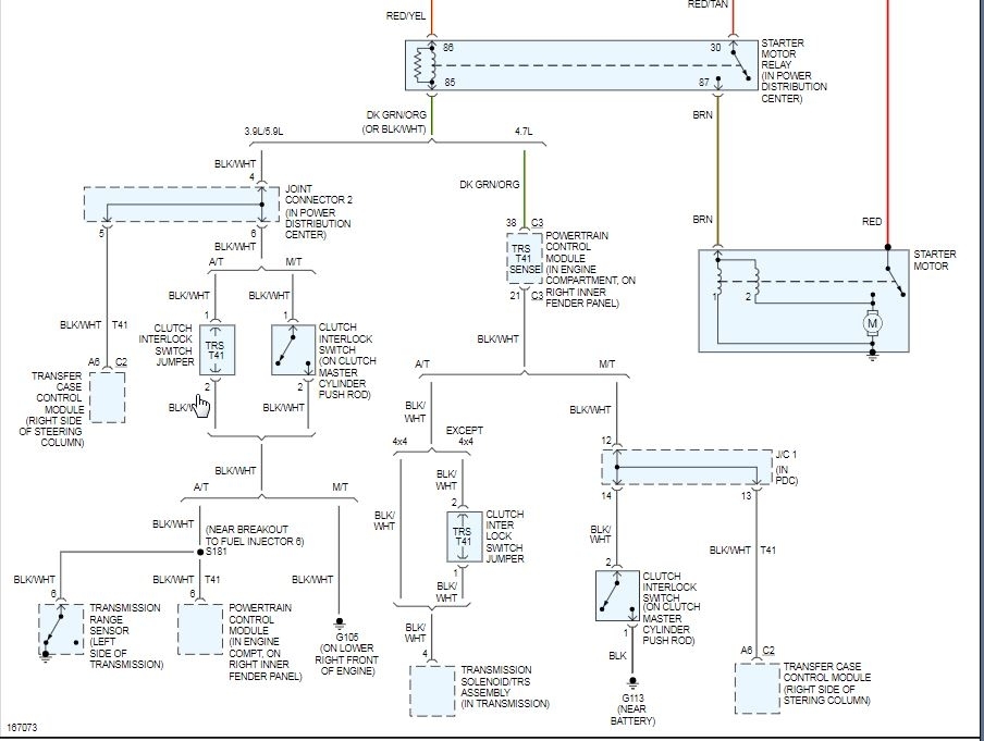 This could be the relay in the PDC for the starter which is the easiest to change. However, I suspect the issue is with either the transmission range sensor itself or the wiring for this range sensor called the T41 circuit.
