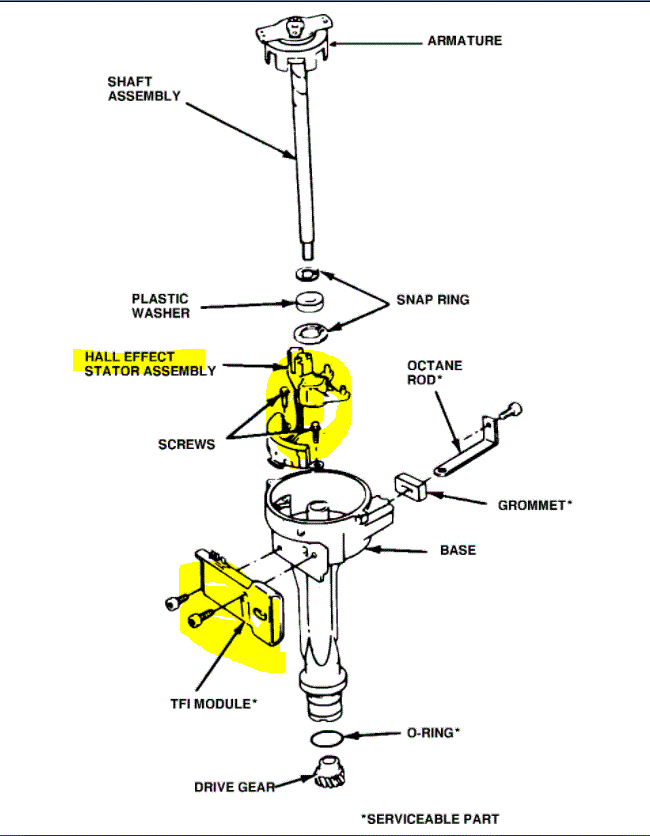 I attached a pic below of the distributor. I highlighted the pick-up coil and the TFI. At this point, what I need to know is if spark is lost to the plugs. If you don't have a tachometer in the truck or a live data scan tool. here is a link that shows how to check for ignition spark: