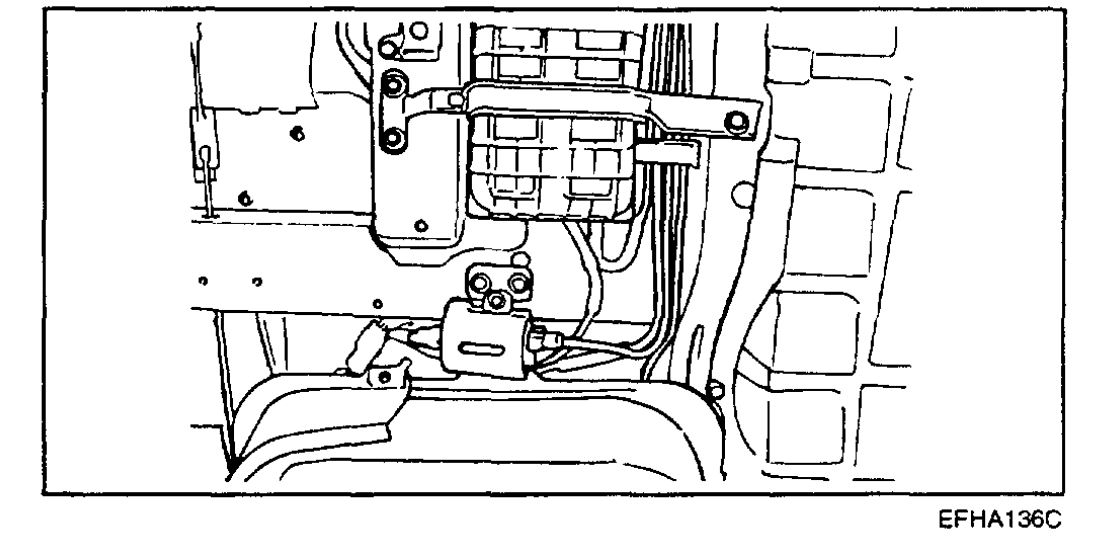 1. To reduce the internal pressure of the fuel main pipes and hose, first start the engine and then disconnect the electrical fuel pump connector located near the fuel tank.