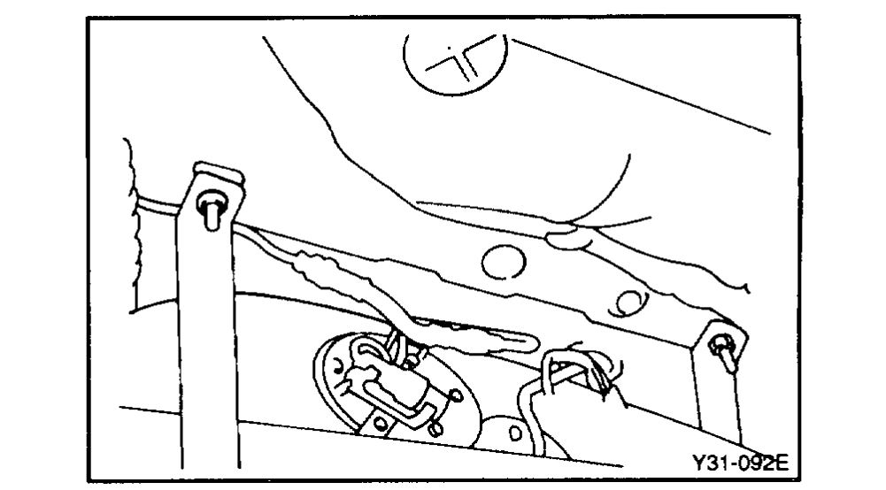 9. Remove the fuel vapor hose and the fuel tank.