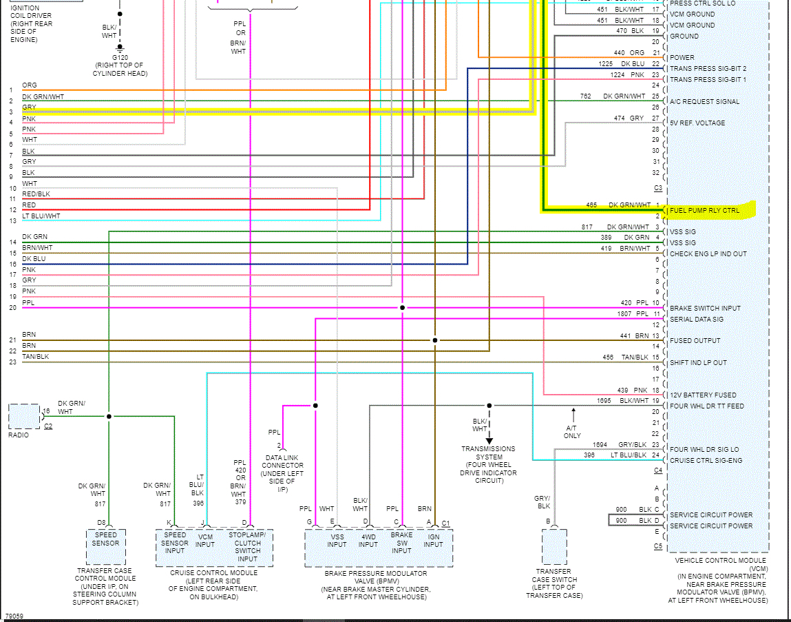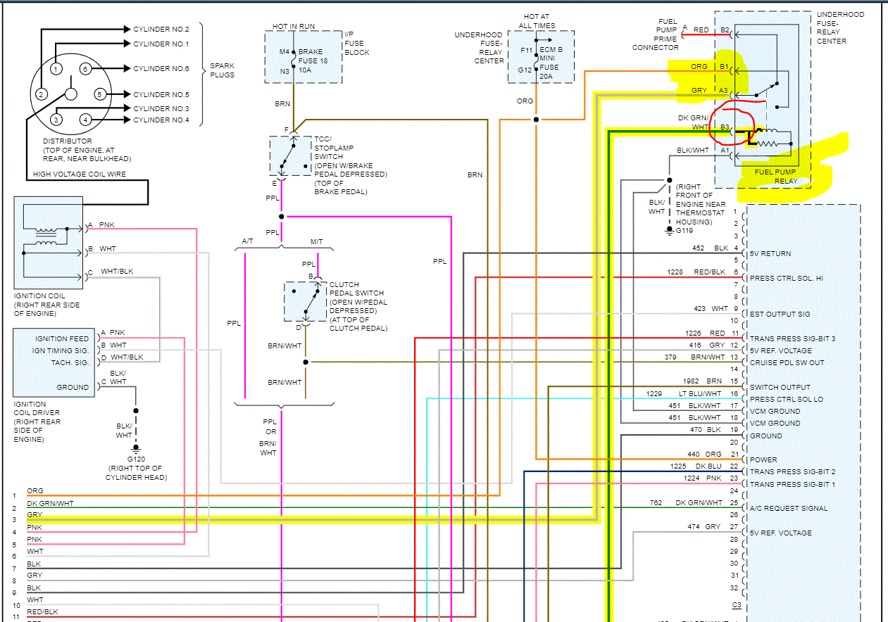 Let me know. Also, note that the grounds for the relay and VCM circuits are tied together at G119 near the thermostat housing. If that ground has failed, it would cause the problem.