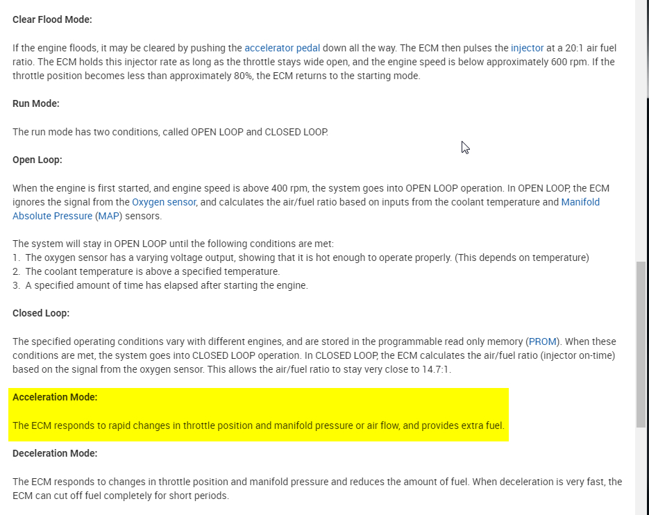 Take a look at this info and let me know what you think. One way to test this is to accelerate and spray a little starter fluid in it and see if it keeps running or even smooths out. The next this we need to look for is vacuum leaks. Let's start here and go to that next.