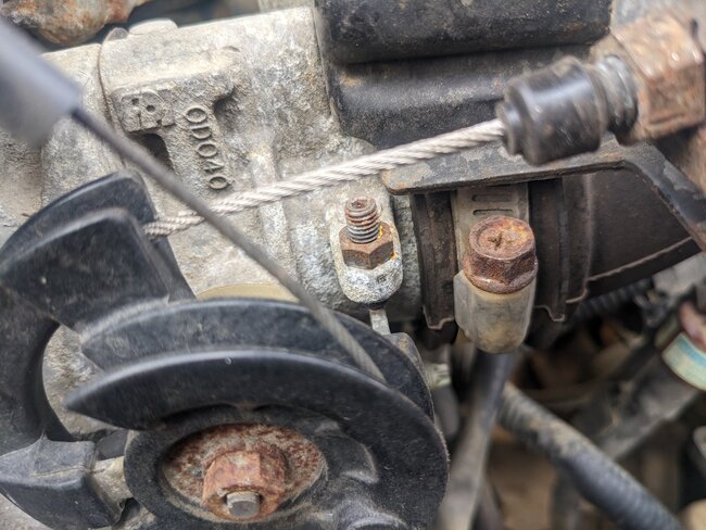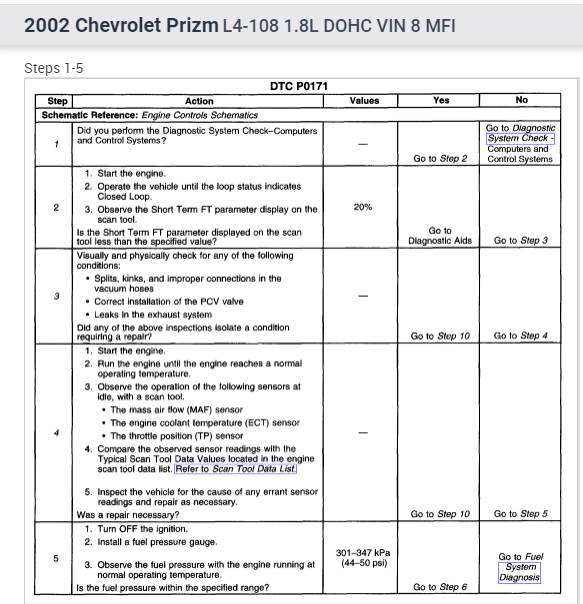 Engine light is on, but it has been all the while. Code P0420. I even scanned it again last night. Trust me, it's a nonfactor. Very "high flow" converter. That's the only code. Live data showed slightly negative long term fuel trim (~-3%). Tires are all new and the alignment is dead on with new inner tie rod ends.