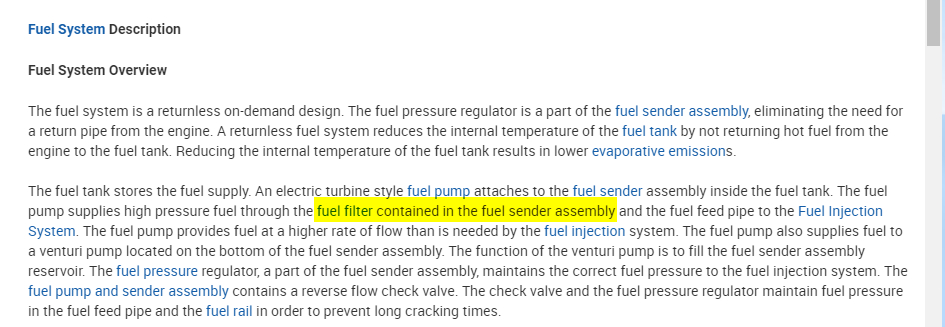 Your filter is part of the fuel pump assembly in the tank. You do not need to change this unless you have to remove the pump for another reason.