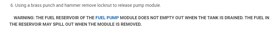 The fuel pump is inside the fuel tank. To access it, you need to remove the fuel tank. Once it is removed, the fuel pump and fuel pump module are removed as a unit from the tank.
