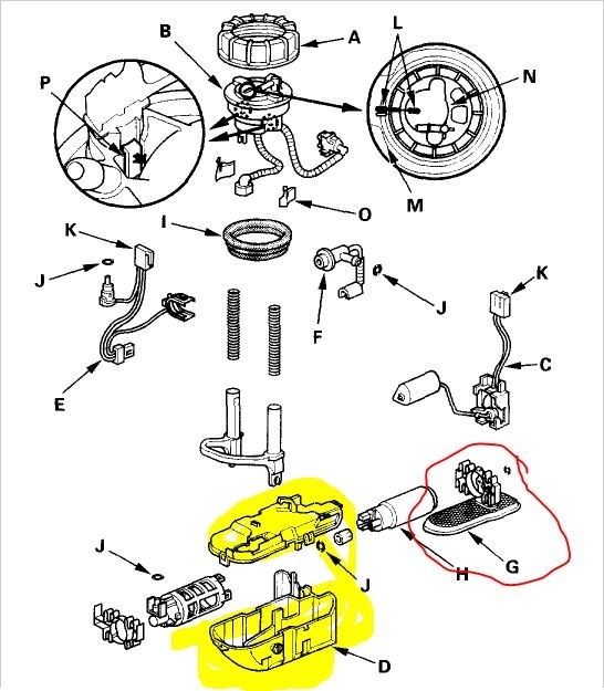 Next go to the pump module and disconnect the electrical connector and the fuel line quick connector. Tuck the line out of the way. Now use a lock ring tool to loosen and remove the module lock ring. Next you will need to lift the pump assembly out of the tank, I usually put absorbent mats around them because they do retain fuel and it stinks if spilled onto the carpet.