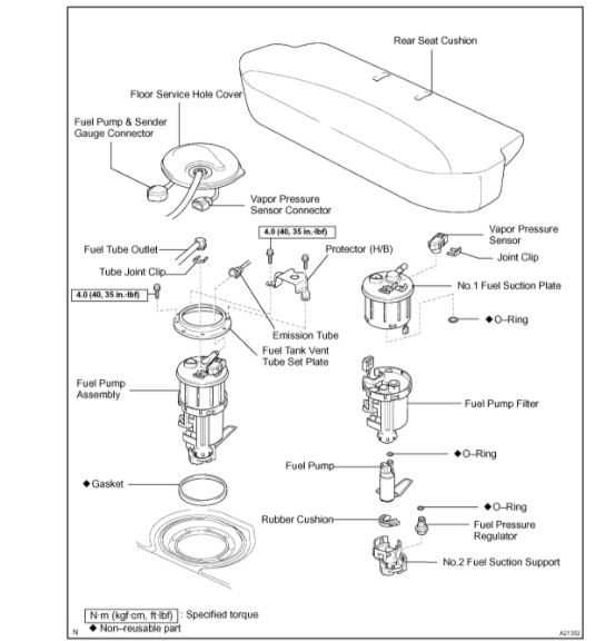 e. Prevent the disconnected fuel tube from damage or foreign matter contamination by covering it with a vinyl bag.