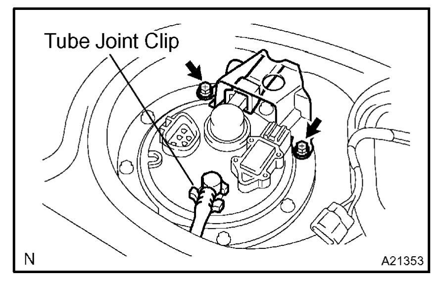 c. Disconnect the fuel tube from the fuel pump assembly.