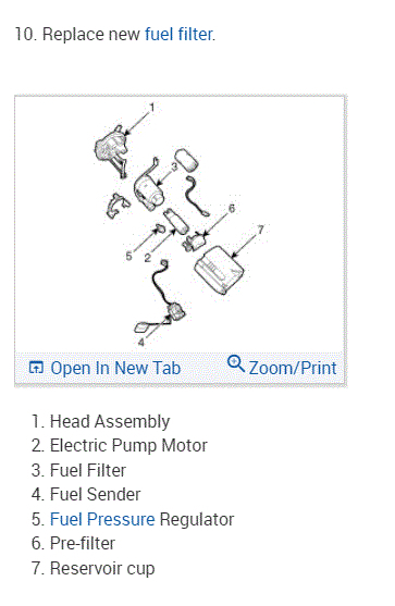 The fuel filter on this vehicle is mounted on the fuel pump in the fuel tank. If you look at the pics below, I included the directions for the removal and replacement of the pump and filter.
