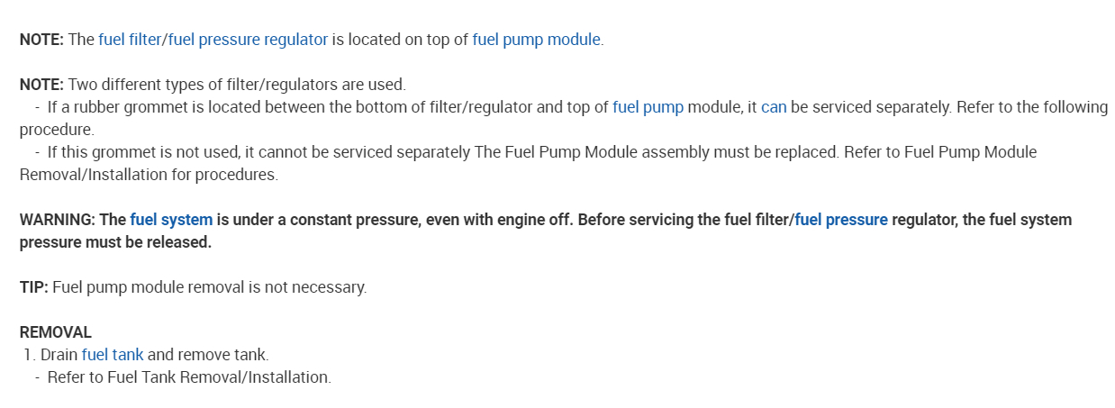 The fuel filter and pressure regulator is on top of and inside the fuel tank, please check the images below to see what I am talking about. Please let us know if you need anything else to get the problem fixed.
