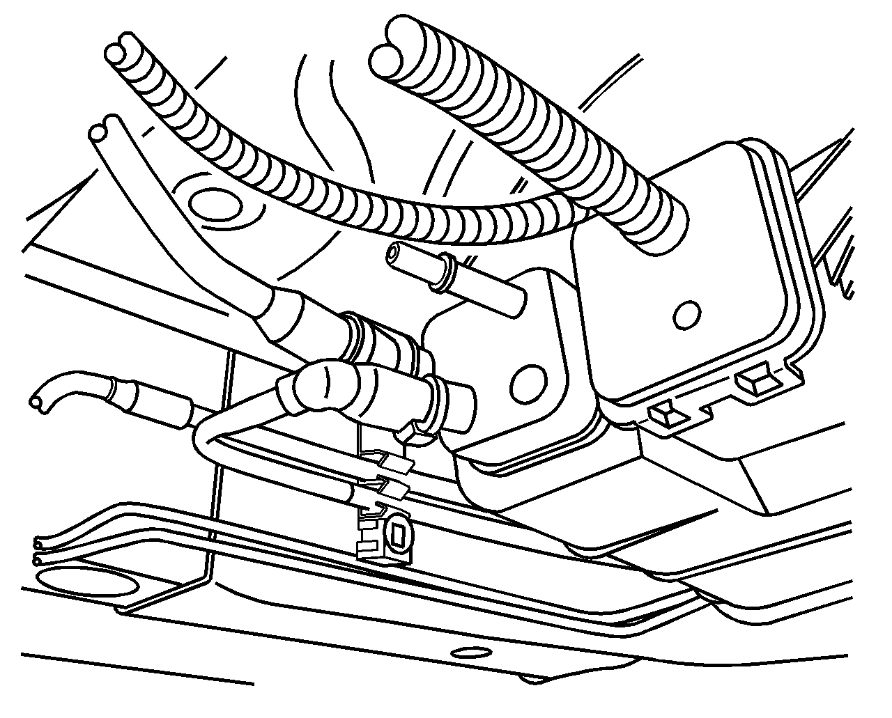 7. Connect the EVAP canister vent and fresh air hoses to the fuel tank hoses.