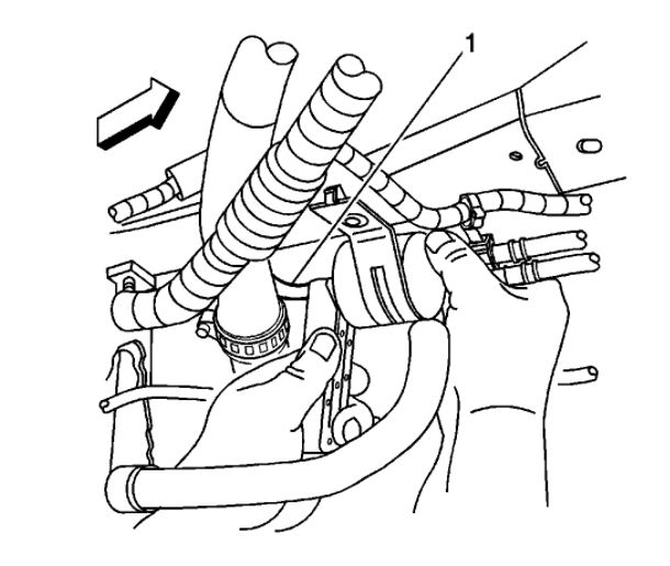 5. Disconnect the fuel filter from the engine fuel feed pipe (1).