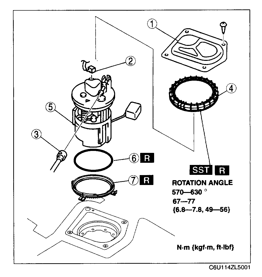 NOTE: The fuel pump cap rotation angle is the angle from the 0 ° position. The angle tightened to using the SST includes the angle tightened by hand.